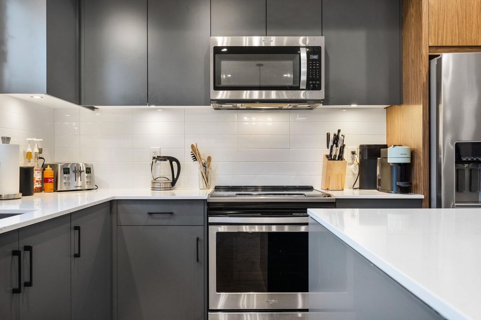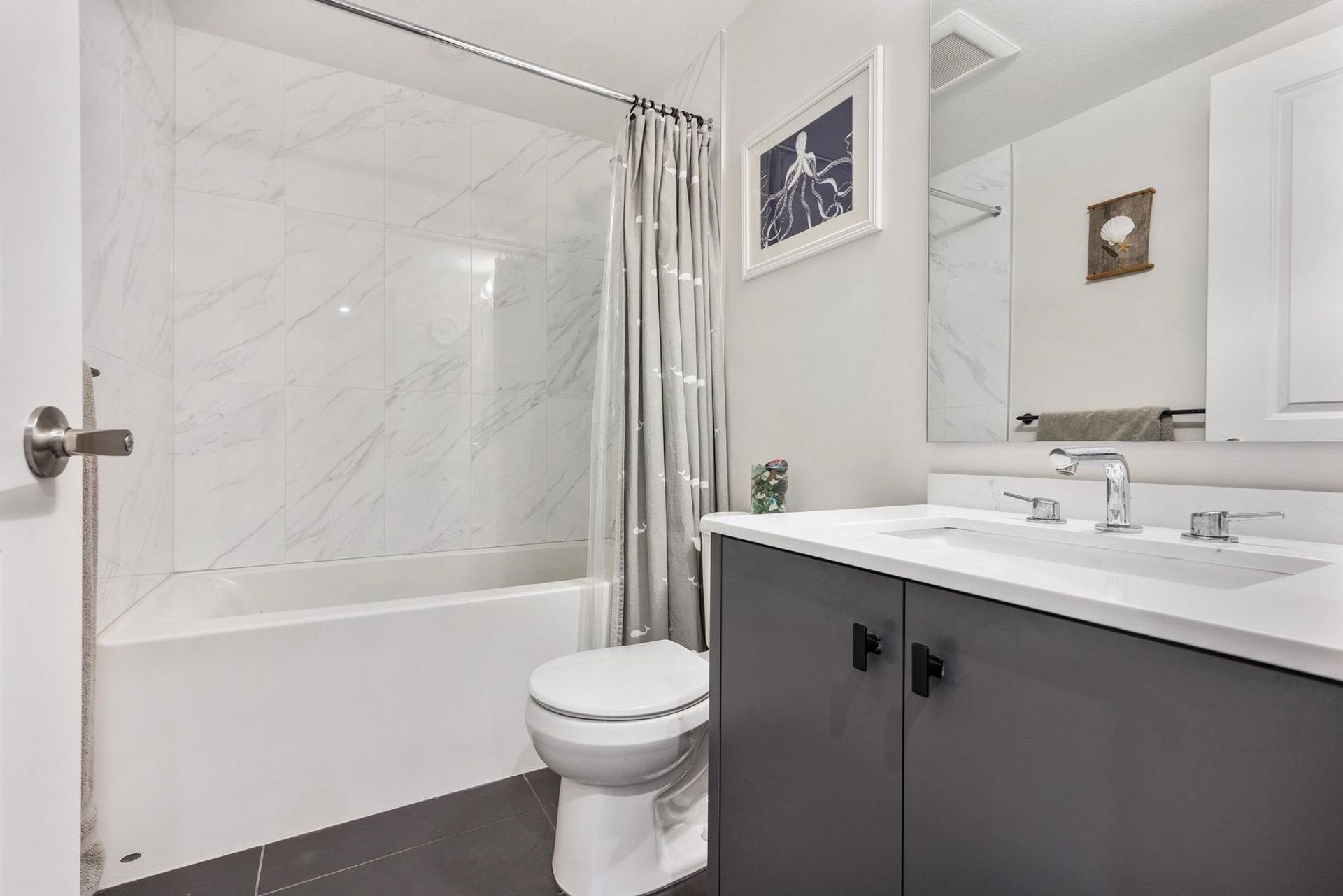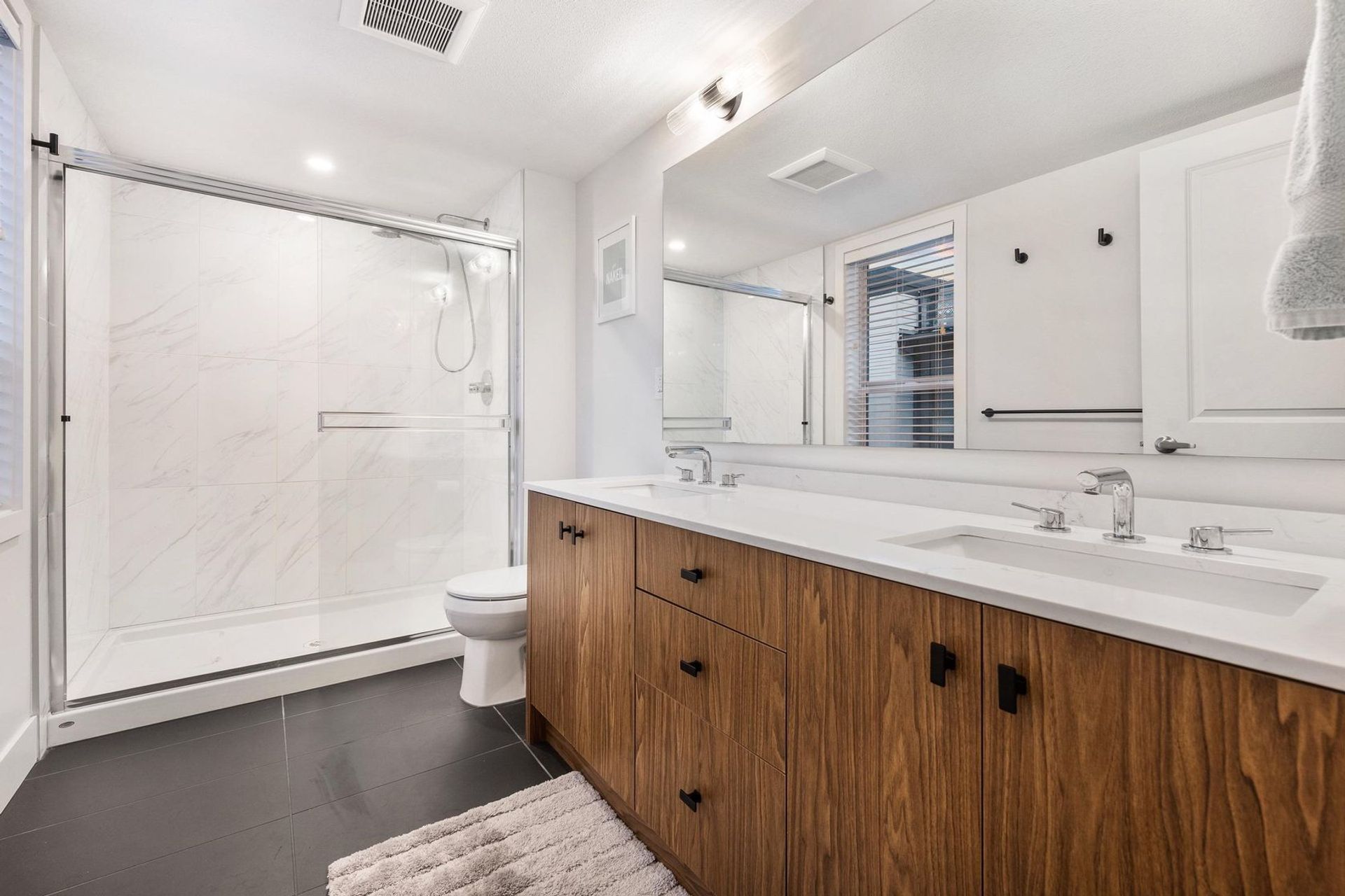 This home seamlessly combines modern finishes and practicality. Revel in stunning Mt Baker views from the expansive rooftop deck, entertain in the large fenced backyard, and enjoy outdoor dining on the kitchen's spacious deck. The property features an impressive double-wide, extra deep garage for two cars, and a workshop or a home gym. Within walking distance of amenities, this home offers three bedrooms, two full baths upstairs, and a main-floor powder room. The open floorplan showcases a chic kitchen with a large island, quartz countertops, soft-close drawers, and stainless steel appliances. Stay comfortable year-round with central air conditioning and eco-friendly heat pump heating. Built less than three years ago, this residence earns a perfect 10/10, epitomizing contemporary living.
