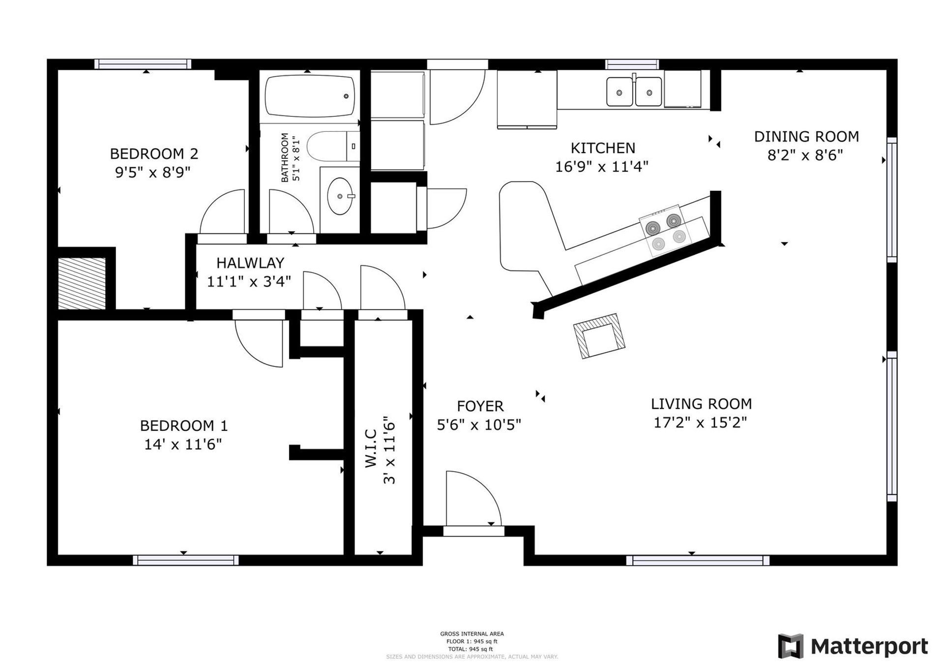 - Square Feet: 945 sqft