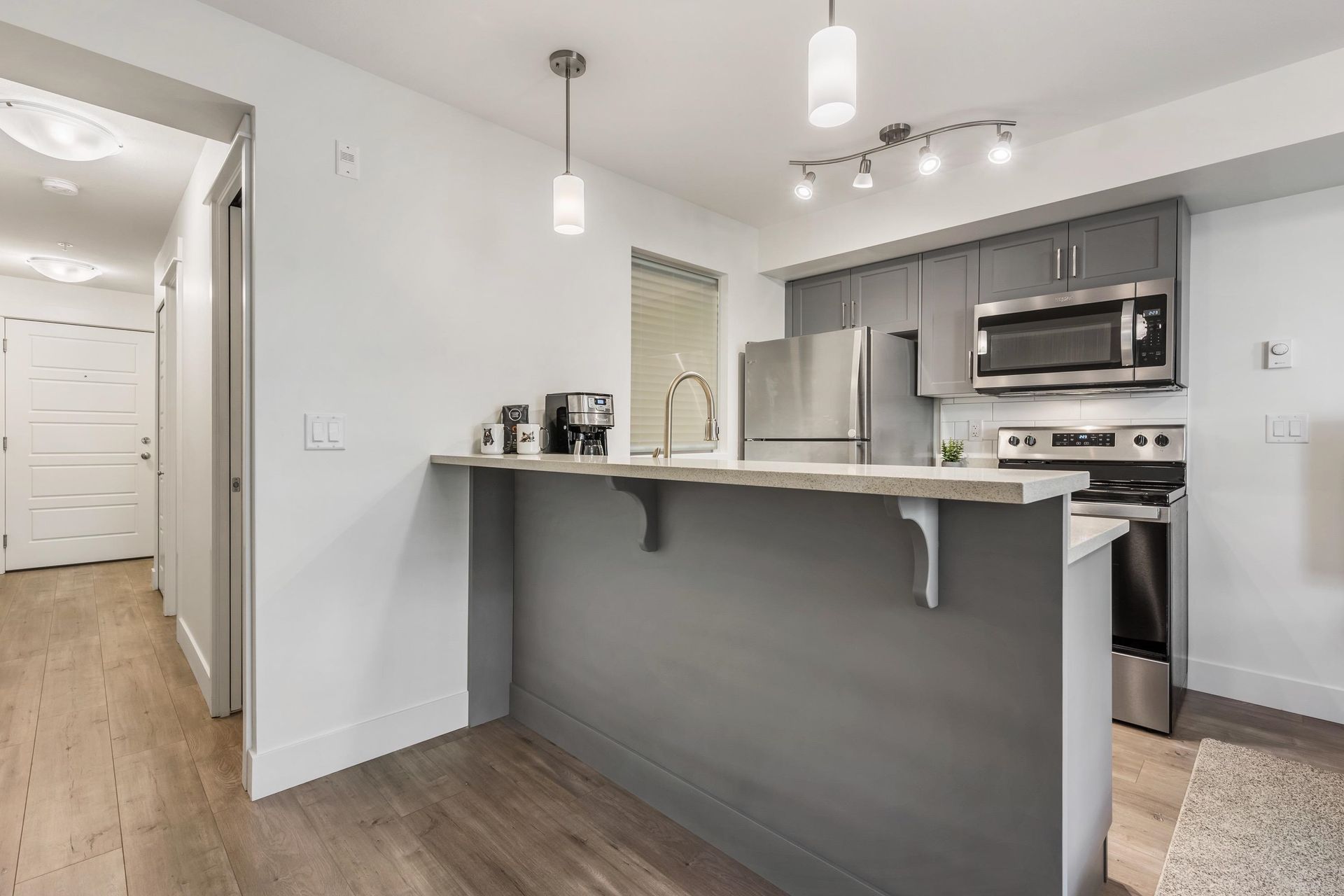 Get a brand new unit without GST! Taxes, strata, utility cost all very low. New roof! New quartz countertops and new backsplash, new stainless steel appliances, new washer/dryer, new laminate flooring and fresh paint. Juliette balcony with a generous floor to ceiling window providing lots of natural light. 1 underground parking and 1 storage. Pets and rentals allowed. No age restrictions. Whether you're a first time buyer or savvy investor, this property offers a prime location walking distance to Highstreet Mall, restaurants and grocery stores, plus easy commuter access to Hwy 1. Don't just find a home, find a lifestyle where modern design meets practical living!
