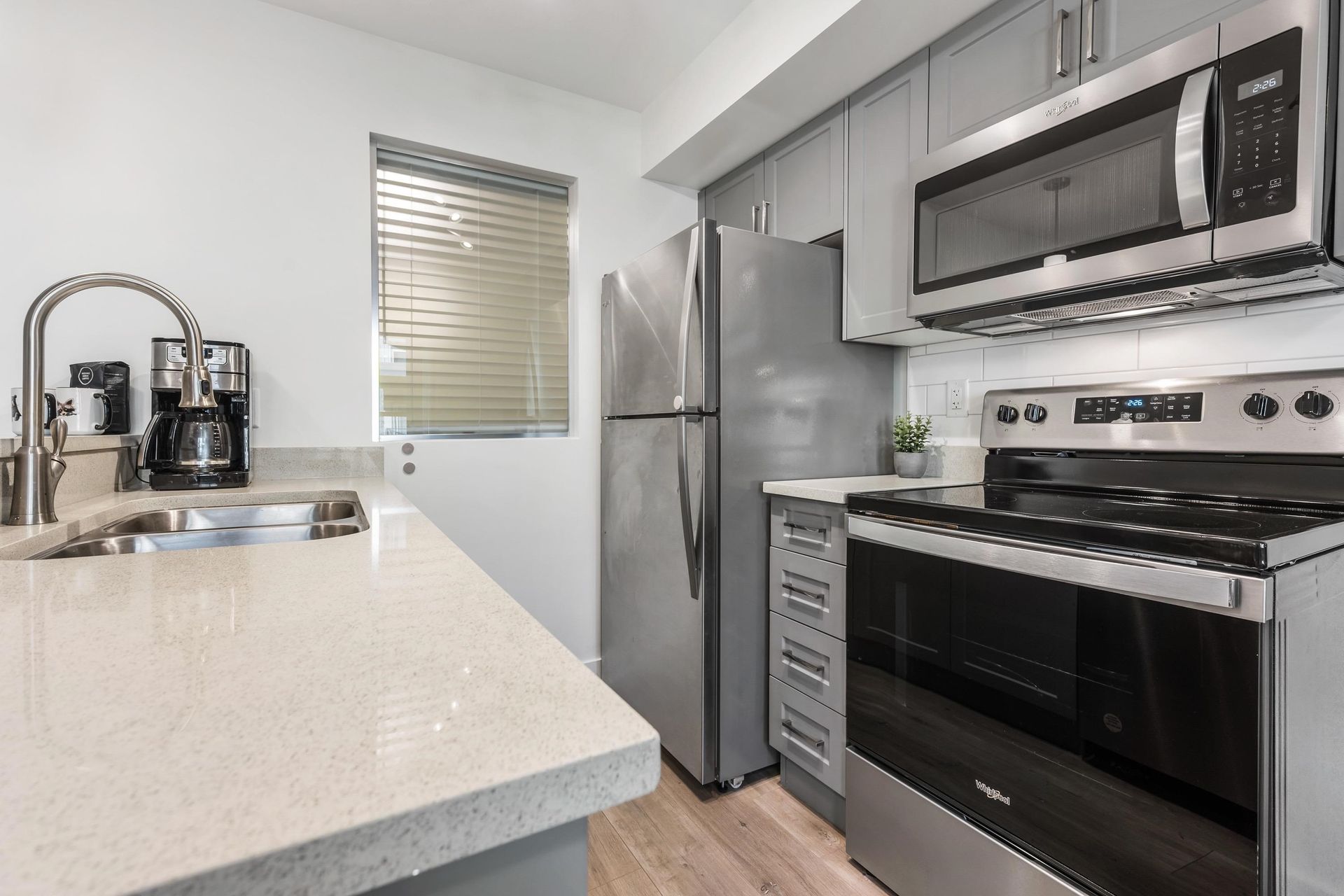 Get a brand new unit without GST! Taxes, strata, utility cost all very low. New roof! New quartz countertops and new backsplash, new stainless steel appliances, new washer/dryer, new laminate flooring and fresh paint. Juliette balcony with a generous floor to ceiling window providing lots of natural light. 1 underground parking and 1 storage. Pets and rentals allowed. No age restrictions. Whether you're a first time buyer or savvy investor, this property offers a prime locati…on walking distance to Highstreet Mall, restaurants and grocery stores, plus easy commuter access to Hwy 1. Don't just find a home, find a lifestyle where modern design meets practical living!