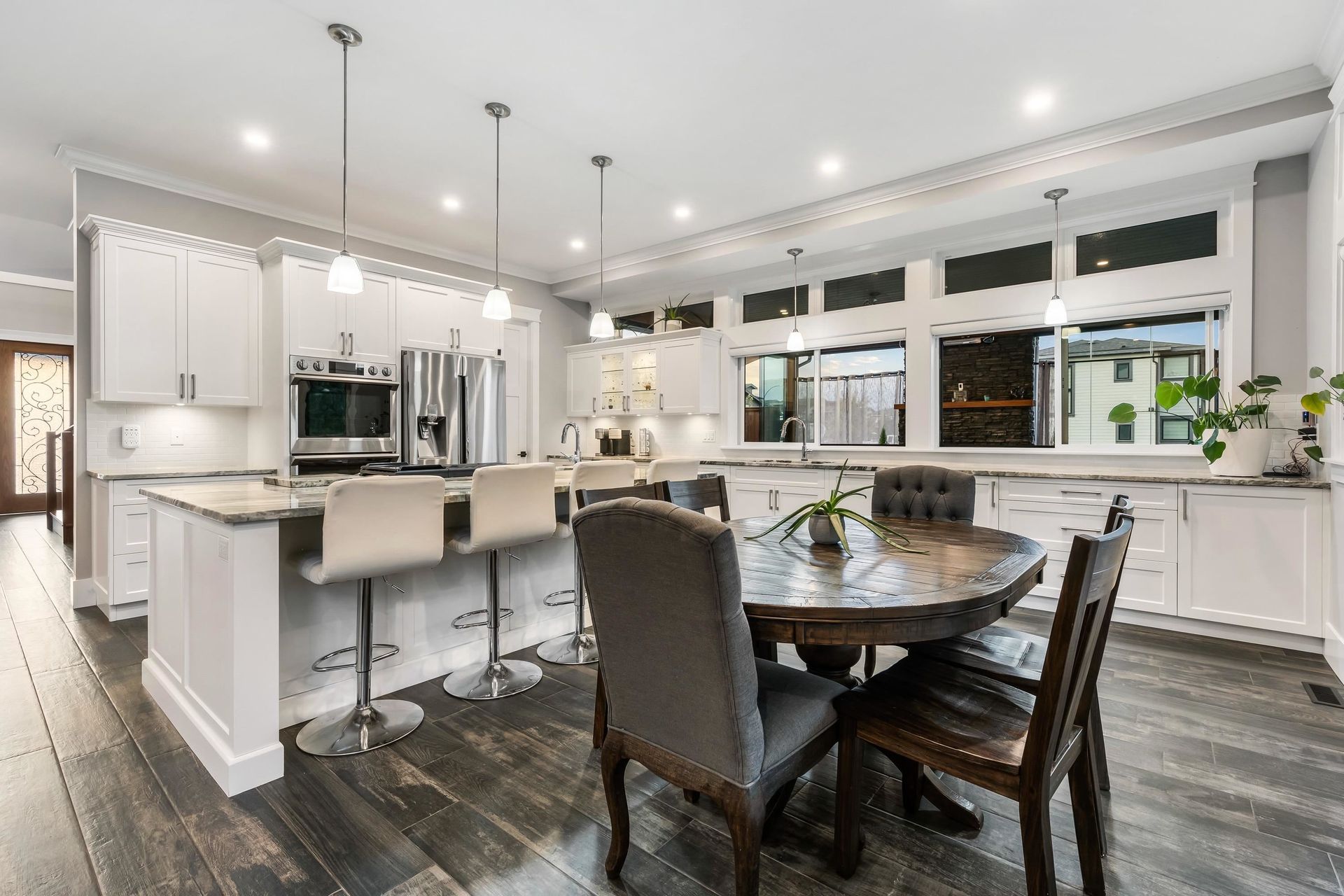Executive custom home backing onto Kinkora Golf Course featuring a chef’s kitchen w/ high-end appliances, oversized island & a great room w/ floor-to-ceiling windows that fill the space w/ natural light. Off the kitchen, enjoy a private enclosed patio w/ fireplace & hot tub for year-round entertaining. Upstairs offers 4 spacious bedrooms, including a luxurious primary suite w/ spa-inspired ensuite, steam shower & soaker tub. Lower level includes a bright 2-bed suite ide…al for in-laws or rental. Additional highlights: detached 1-bed coach house, double-wide lot & car enthusiast’s dream garage. Unobstructed golf course views w/ no rear neighbours—an estate-style property in one of Chilliwack’s most sought-after locations.