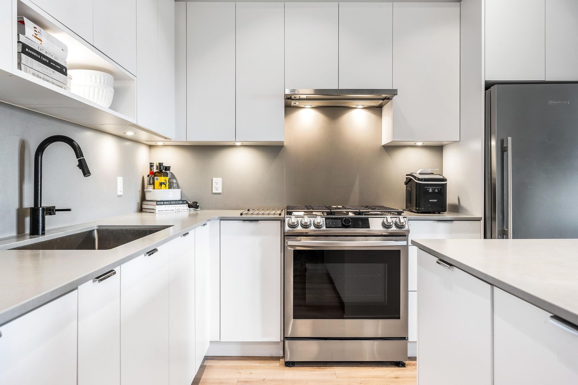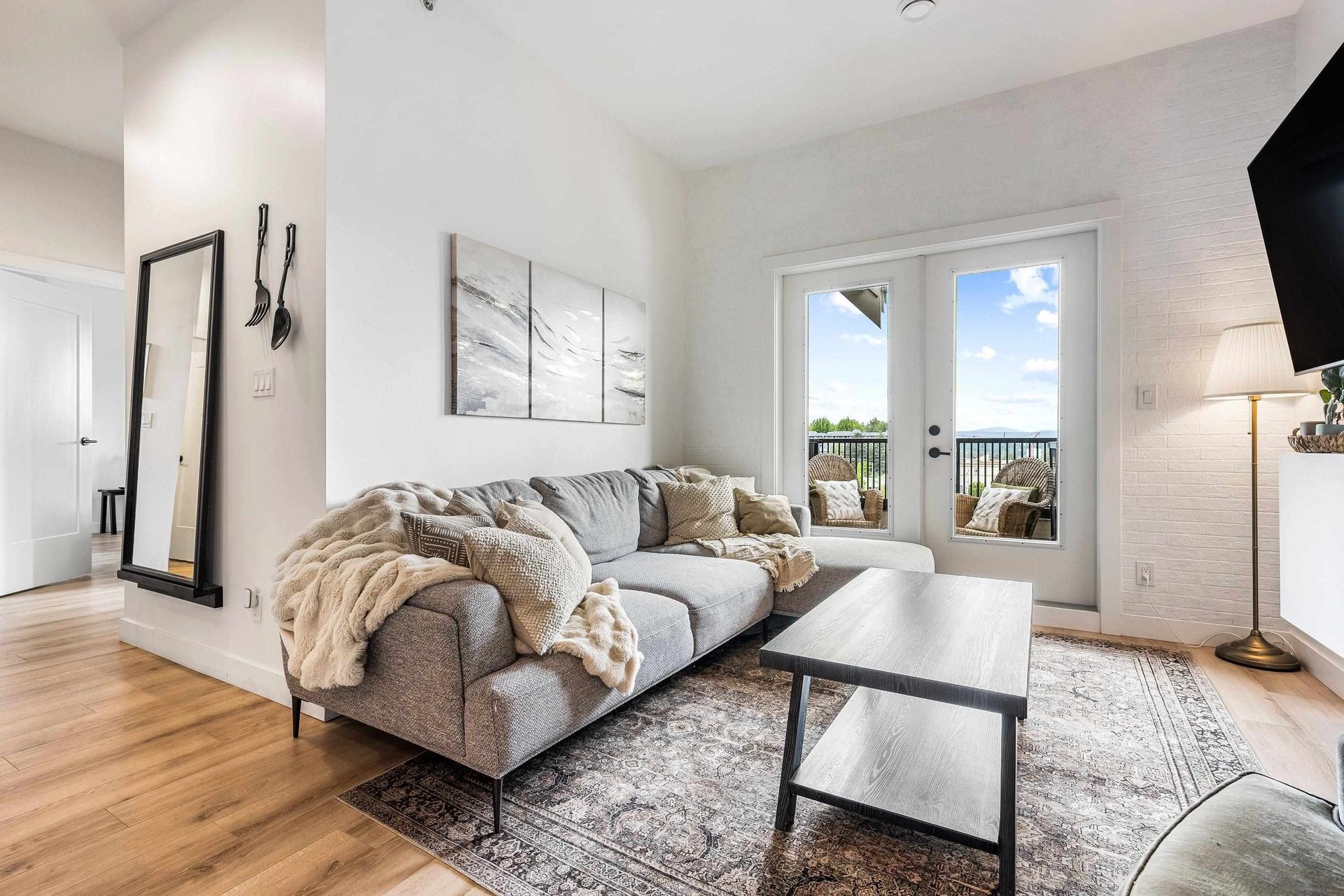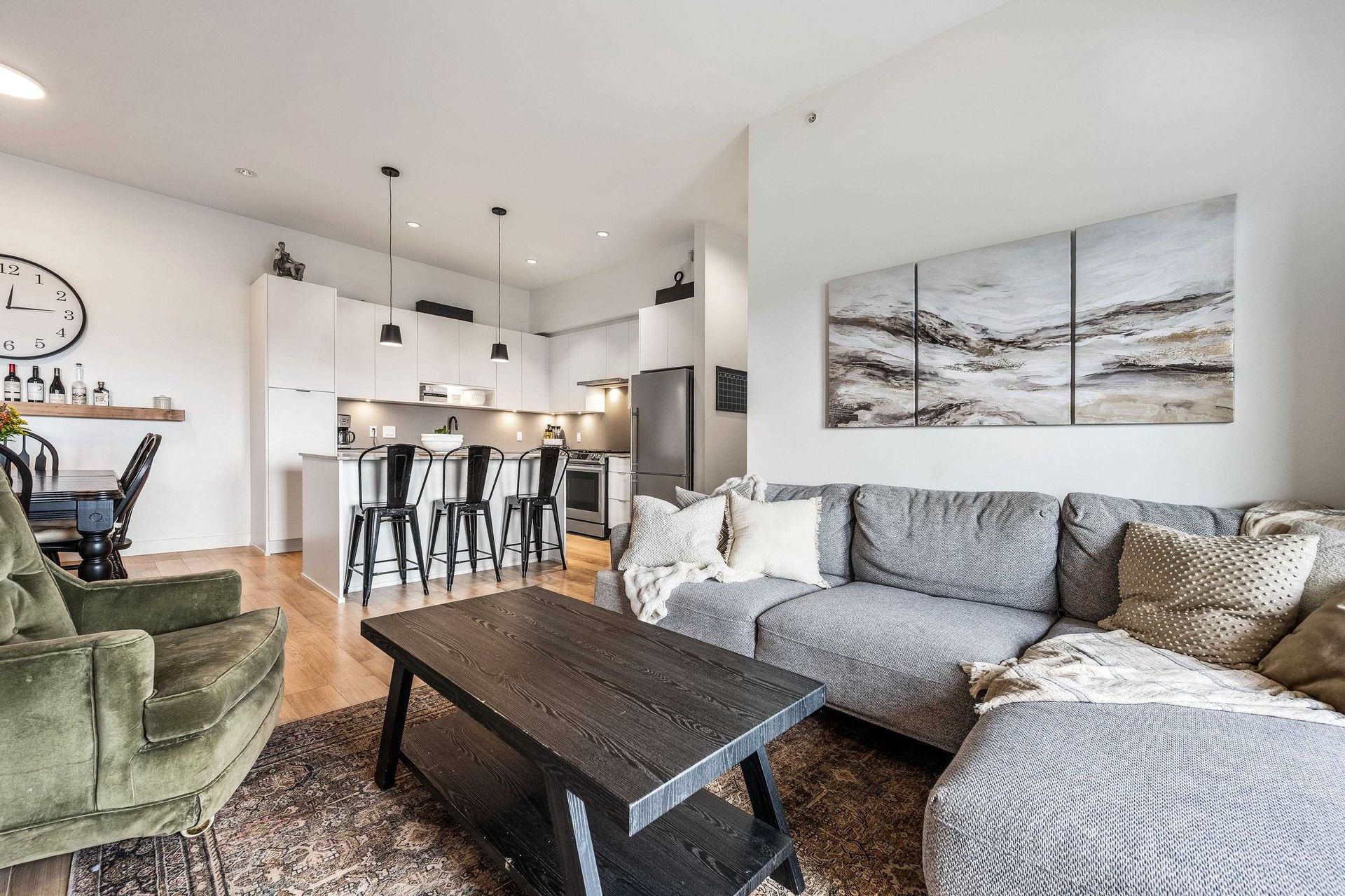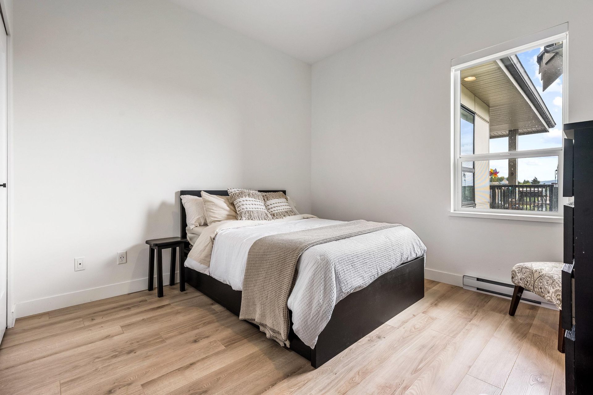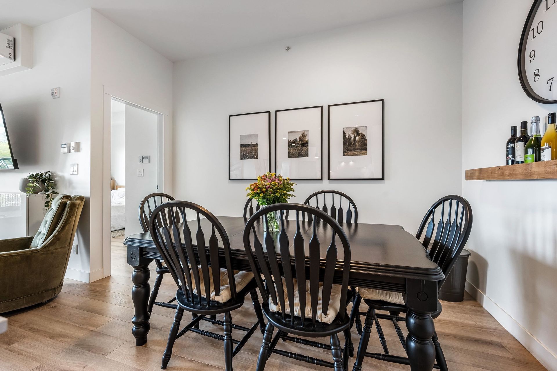 Welcome to Upper Montrose in the heart of downtown Abbotsford! This top-floor 3 bed + den, 2 bath home offers 1,225 sqft of open-concept living with stunning northern views. Features include A/C in the living room and primary bedroom, a gourmet kitchen with quartz counters, stainless appliances, large island, and gas BBQ hookup on the patio. The spacious primary suite boasts walk-through closets and a double-sink ensuite. The versatile den is perfect for a nursery, office, or… extra storage. Enjoy 2 parking stalls, family-friendly amenities, and proximity to schools, shops, cafes, gyms, Old Yale Brewing, and the new transit loop.