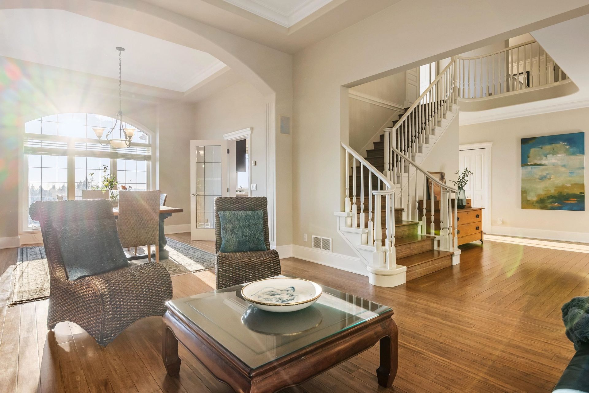 Timeless Eagle Mountain estate on one of the mountain’s most sought-after cul-de-sacs. Over 5,300 sq ft of fully renovated living space on a private ¼ acre lot with breathtaking mountain and prairie views from all three levels. Grand foyer opens to formal living and dining rooms. Chef’s kitchen with wall oven, gas range, oversized island with prep sink, and bright nook. Main floor also features a den and inviting family room. Upstairs offers 4 bedrooms, all with …ensuites, plus laundry. Primary ensuite with heated floors and spa-inspired. Walk-out lower level includes full bar, lounge, media room, gym or 5th bedroom, and large rec room. Triple garage, heated driveway, A/C, Control4, radiant heat, south-facing deck and more.