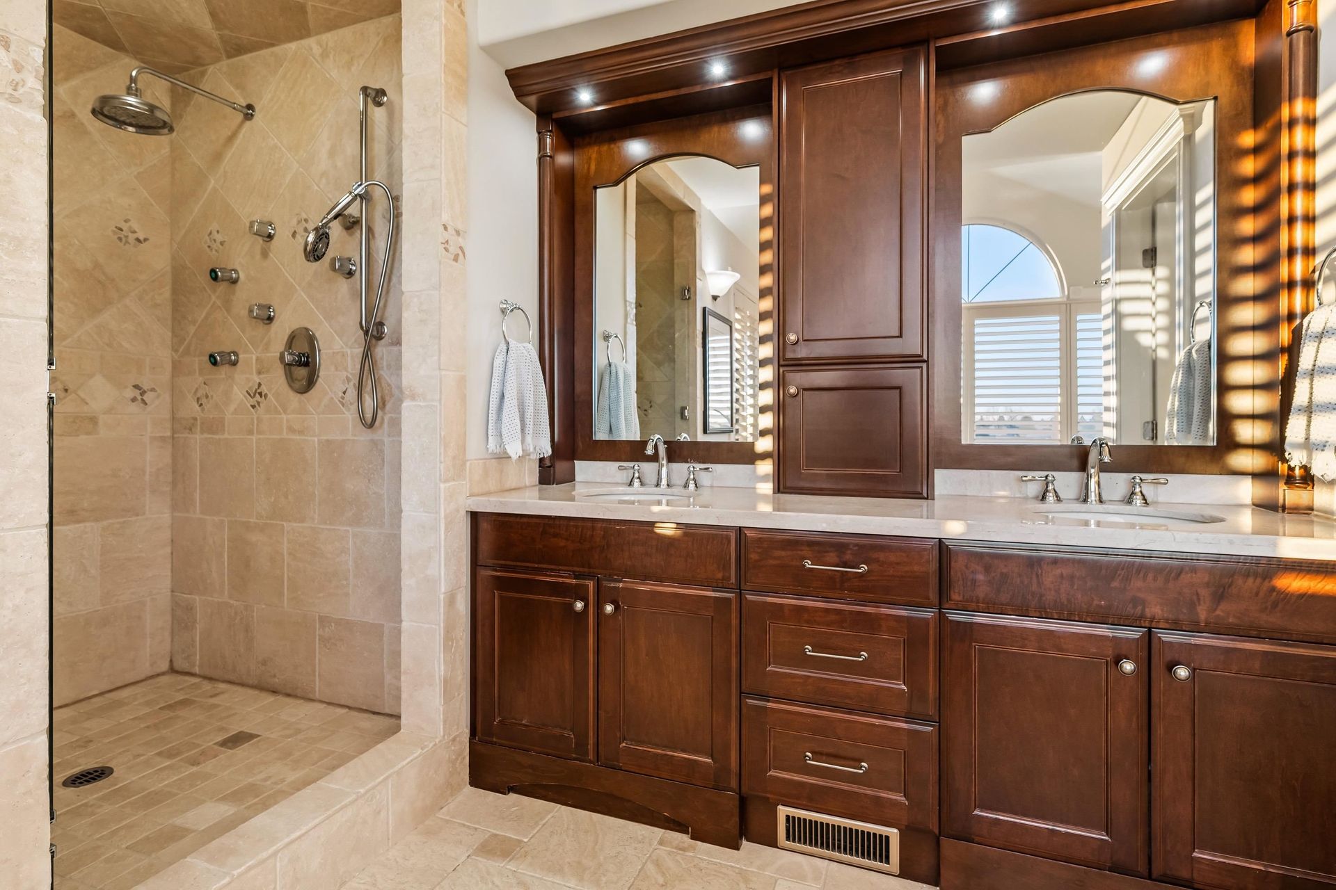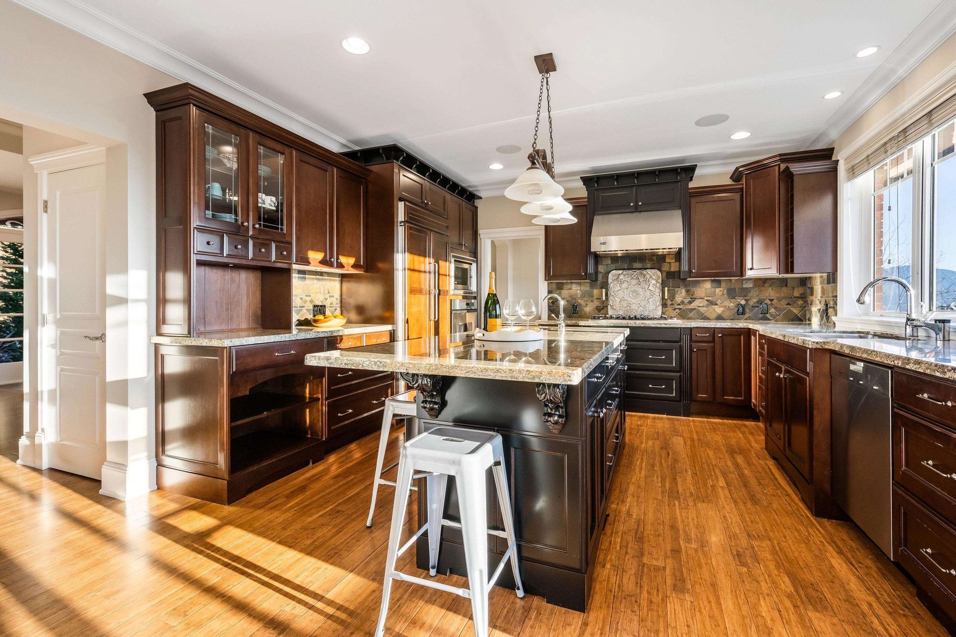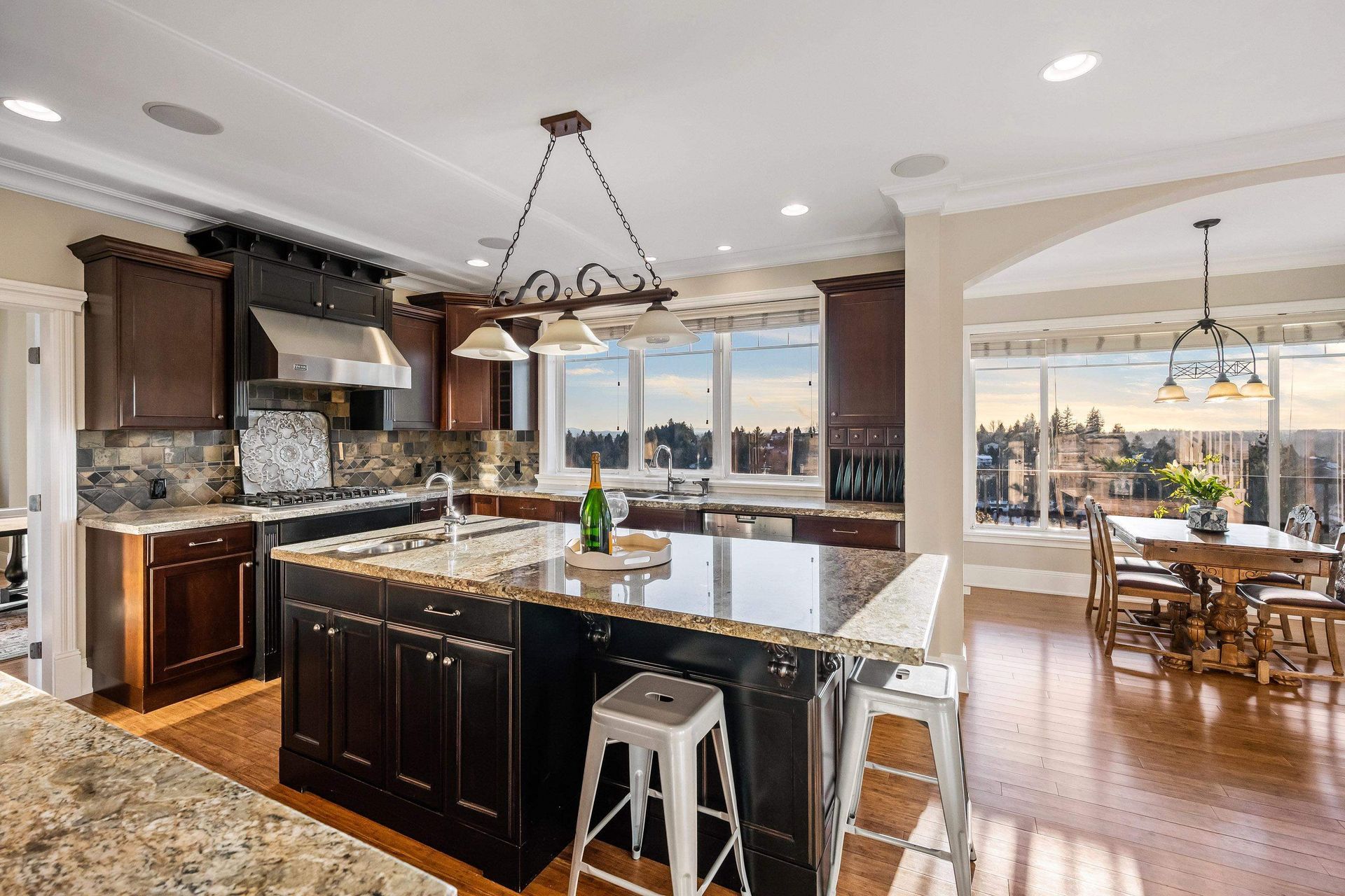 Timeless Eagle Mountain estate on one of the mountain’s most sought-after cul-de-sacs. Over 5,300 sq ft of fully renovated living space on a private ¼ acre lot with breathtaking mountain and prairie views from all three levels. Grand foyer opens to formal living and dining rooms. Chef’s kitchen with wall oven, gas range, oversized island with prep sink, and bright nook. Main floor also features a den and inviting family room. Upstairs offers 4 bedrooms, all with ensuites, plus laundry. Primary ensuite with heated floors and spa-inspired. Walk-out lower level includes full bar, lounge, media room, gym or 5th bedroom, and large rec room. Triple garage, heated driveway, A/C, Control4, radiant heat, south-facing deck and more.