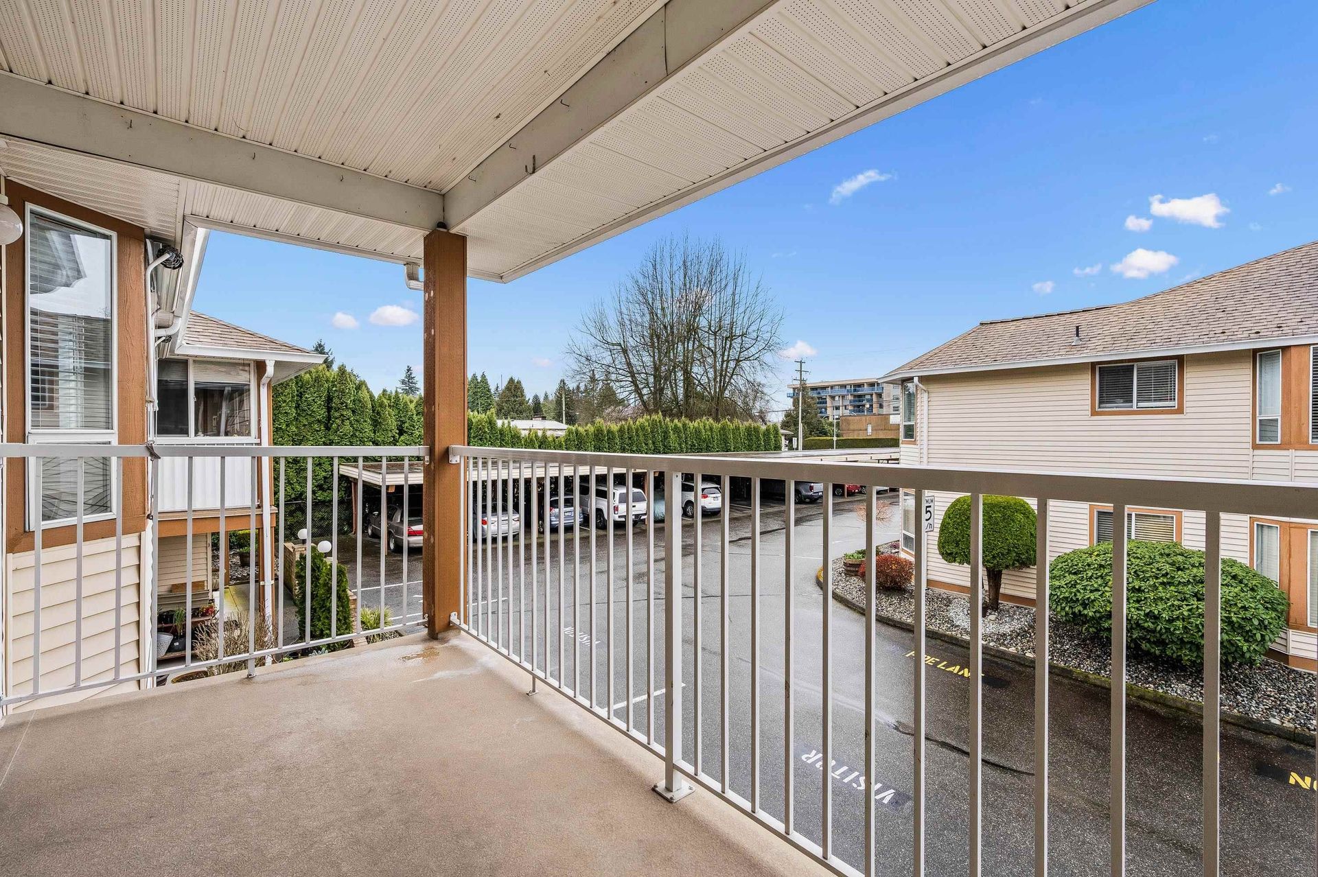 Upper-level living steps from Mill Lake! This nearly 1,000 sq ft 2 bed, 1 bath rancher-style townhome offers a bright, open layout in a well-maintained 55+ complex. Spacious living room opens to a sunny west-facing front patio. Kitchen comes with ample cabinetry and a bright eating area. In-suite laundry. Enjoy a private east-facing green space as well. Pet-friendly (1 dog & 1 cat or 2 cats) and includes 1 covered parking stall. Fantastic central location across from Mill Lake Park—walk to Sevenoaks Mall, shopping, restaurants, medical services, and transit just steps away.